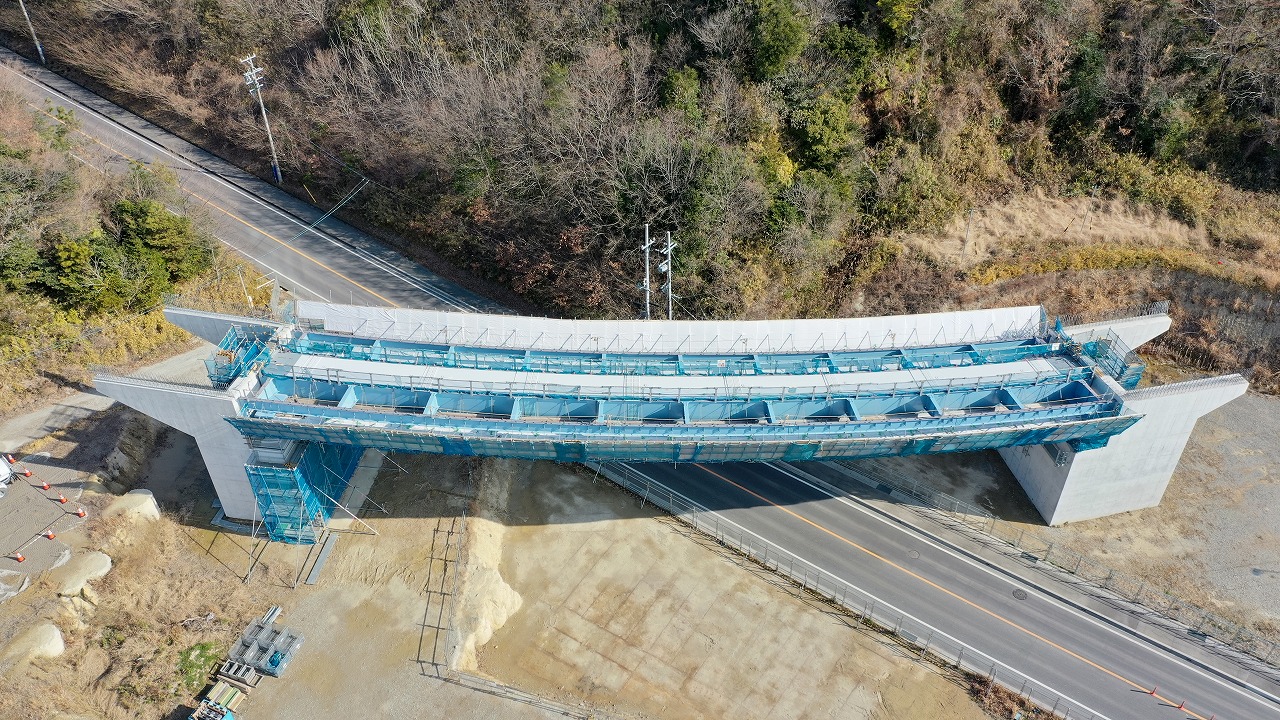 - ・支承取替:48基 ・既設落橋防止装置撤去復旧:22箇所 ・落橋防止装置:8箇所 ・端横桁補強材撤去復旧 :13箇所 ・表面被覆工(剥落防止):948㎡ ・亀裂補修工:245箇所