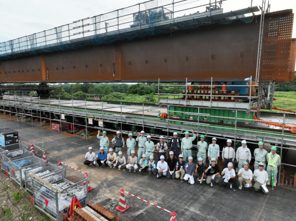 去る令和7年7月23日、岐阜大学の学生と先生16名が(仮称)新愛岐大橋(P9-A2間)の施工現場を見学しました。当日は、工事概要の説明後、施工方法や設備について、説明を受けていただきました。工事現場を初めて見た大学生を含め、とても有意義な現場見学会になりました。