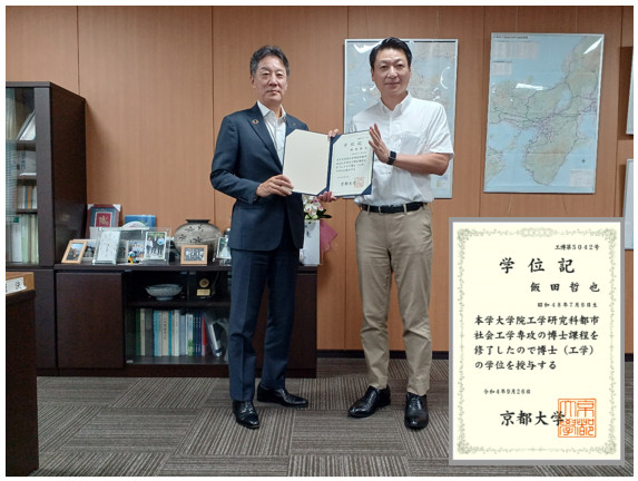 この度、当社社員の飯田哲也が京都大学大学院工学研究科都市社会工学専攻の博士後期課程修了および博士(工学)の学位を取得しました。